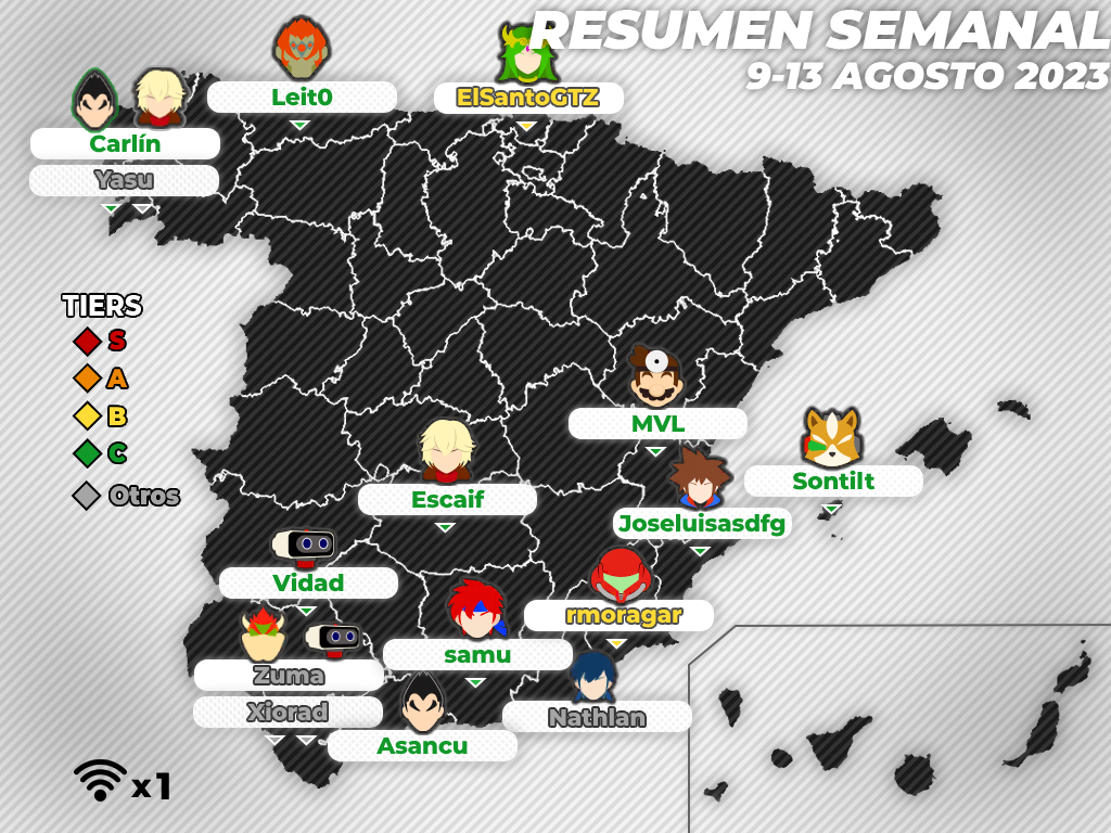 Buenos días. Soy Tunio y, con la ayuda de Haida, Nis, Yasu, Never y TailsJigglypuff, os traigo una nueva entrega del resumen de todos los torneos españoles del fin de semana. Se trata de crónicas muy cortas, con el mero objetivo de informar de los aspectos esenciales y algún otro dato de interés. Si quieres saber más sobre alguno de estos torneos te recomiendo acudir a su página en la web de Smash Bros. Spain o Start.gg, así como ver las partidas grabadas en Twitch o Youtube.