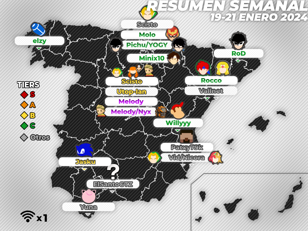 - Madrid estrenó una nueva saga de torneos mensuales "normales", para prepararse después de una temporada en la que solo tenían nacionales o semanales. Por supuesto, fue todo lo que se podía esperar de un mensual madrileño: estuvo llenito de tops. Eso sí, el ganador no fue ninguno de los que se esperaba, puesto que Scisto (seed 6) viajó desde Euskadi para dar todo un golpe en la jerarquía nacional al derrotar a los tres jugadores con mejor seeding: HDtrainer, Utop-Ian y Pepo (en Winners y Grand Final). Su escudero en este viaje fue gafce, que brilló con luz propia al derrotar a Age (seed 12 frente a 4) y ganarse así un quinto puesto. Por último, debo destacar el upset de Potato Master a Chules (seed 22 frente a 11).