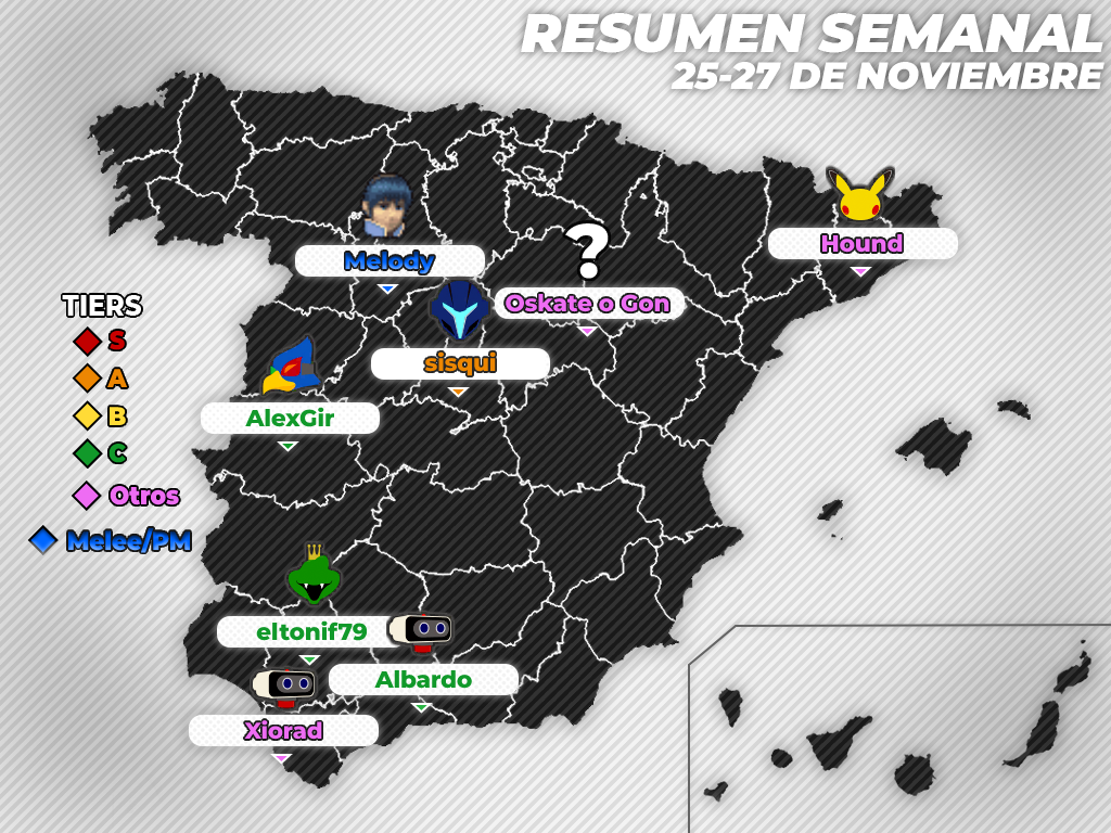 Buenos días. Soy Tunio y os traigo una nueva entrega del resumen de todos los torneos españoles del fin de semana. Se trata de crónicas muy cortas, con el mero objetivo de informar de los aspectos esenciales y algún otro dato de interés. Si quieres saber más sobre alguno de estos torneos te recomiendo acudir a su página en la web de Smash Bros. Spain o Start.gg, así como ver las partidas grabadas en Twitch o Youtube.