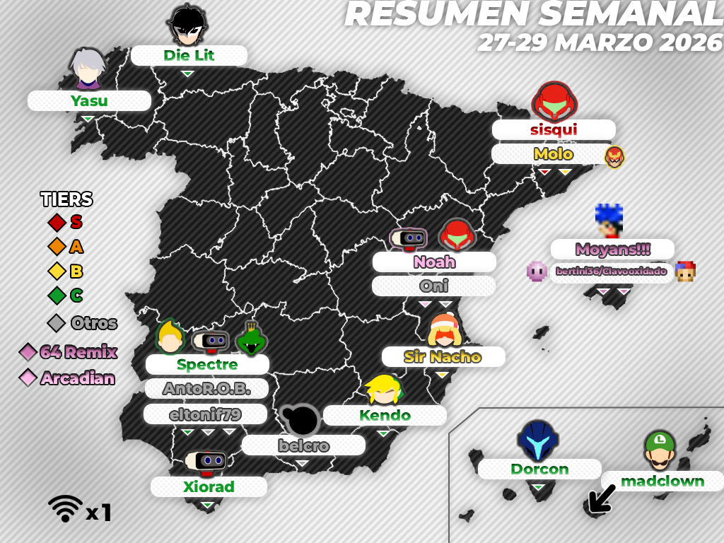 Buenos días. Soy Tunio... exacto, vuelvo a ser yo, después de más de dos meses de gran cobertura por parte de Angeloti, Jasku, Ramonium y Hound. Ahora, con la ayuda de Angeloti, Hound, Zohar, Nis, Yasu, Never y TailsJigglypuff, os traigo una nueva entrega del resumen de todos los torneos españoles del fin de semana. Se trata de crónicas muy cortas, con el mero objetivo de informar de los aspectos esenciales y algún otro dato de interés. Si quieres saber más sobre alguno de estos torneos te recomiendo acudir a su página en la web de Smash Bros. Spain o Start.gg, así como ver las partidas grabadas en Twitch o Youtube.