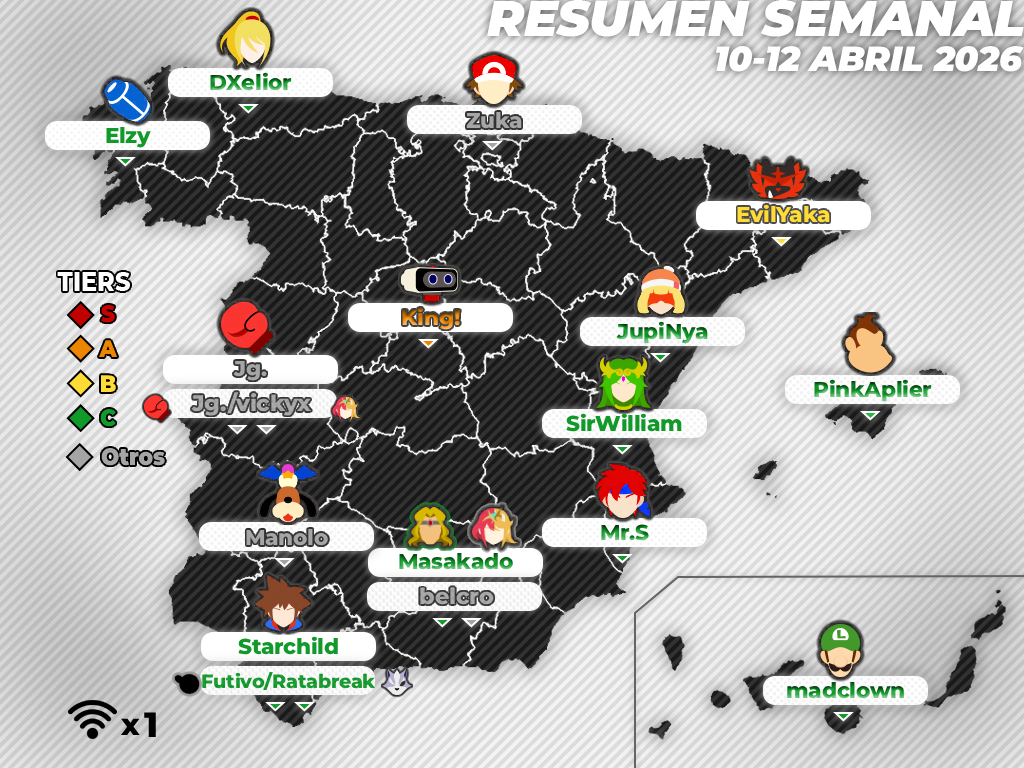 Buenos días. Soy Tunio, y con la ayuda de Angeloti, ArticAzelhart, Hound, Zohar, Yasu y TailsJigglypuff, os traigo una nueva entrega del resumen de todos los torneos españoles del fin de semana. Se trata de crónicas muy cortas, con el mero objetivo de informar de los aspectos esenciales y algún otro dato de interés. Si quieres saber más sobre alguno de estos torneos te recomiendo acudir a su página en la web de Smash Bros. Spain o Start.gg, así como ver las partidas grabadas en Twitch o Youtube.
