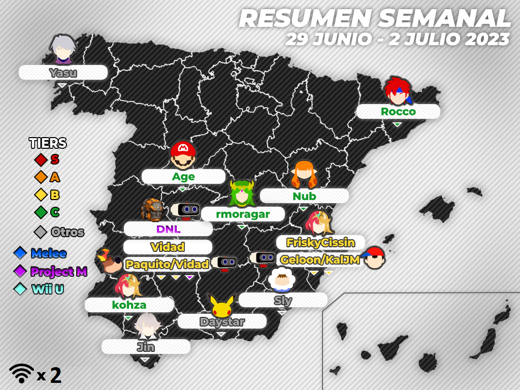 Buenos días. Soy Tunio y, con la ayuda de Nis, Yasu, Never y TailsJigglypuff, os traigo una nueva entrega del resumen de todos los torneos españoles del fin de semana. Se trata de crónicas muy cortas, con el mero objetivo de informar de los aspectos esenciales y algún otro dato de interés. Si quieres saber más sobre alguno de estos torneos te recomiendo acudir a su página en la web de Smash Bros. Spain o Start.gg, así como ver las partidas grabadas en Twitch o Youtube.